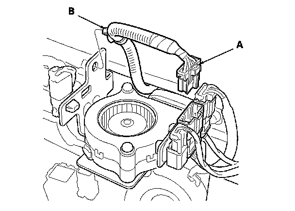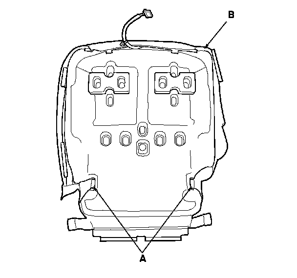6. Disconnect the seat cushion heater connector (A) and detach the harness clip (B).