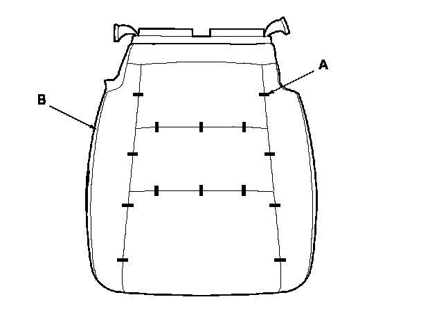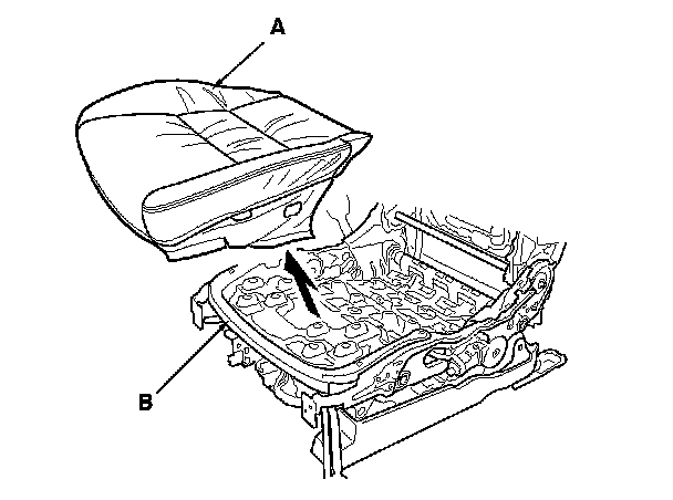 12. Pull back the edge of the seat cushion cover all the way around, and release the upholstery rings (A), then remove the seat cushion cover (B).
