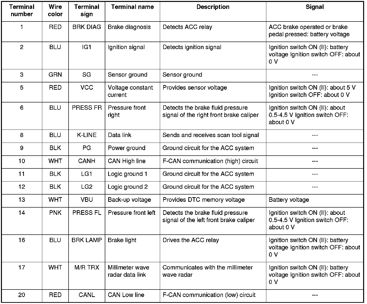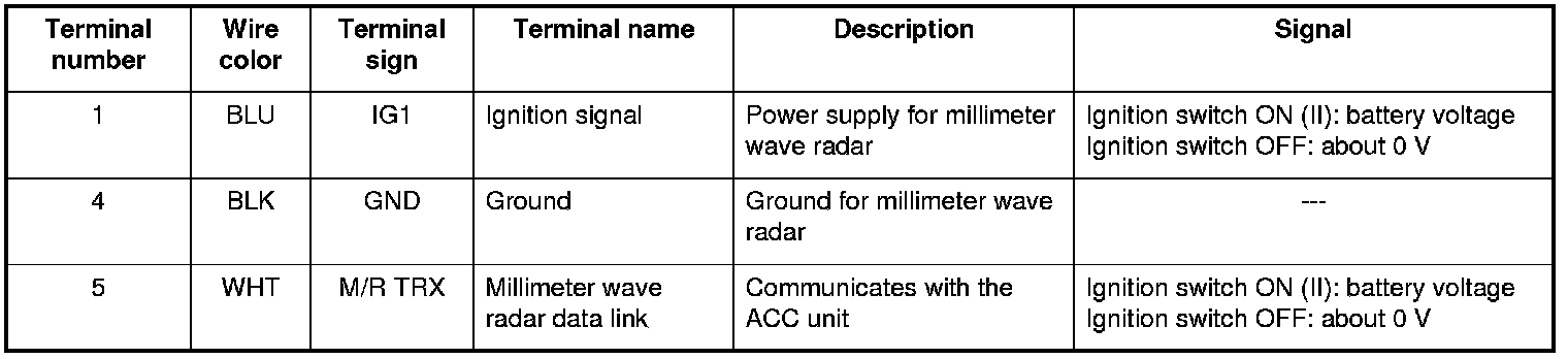 The millimeter wave radar has a self-diagnostic function, it sends this information to the ACC unit.