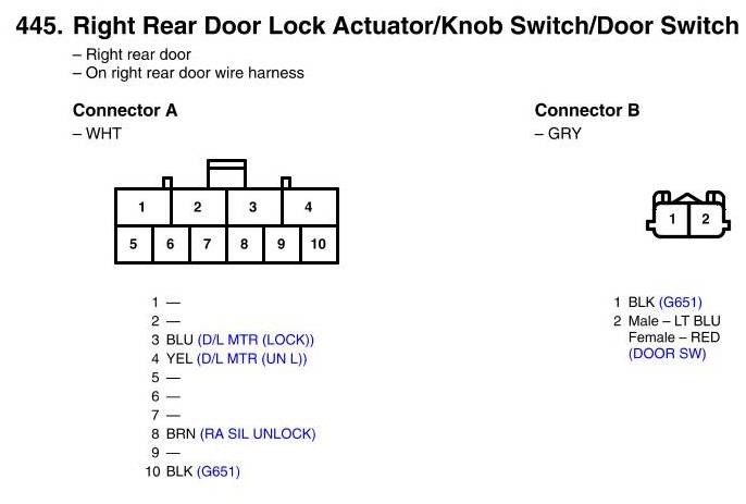View 445 - Right Rear Door Lock Actuator/Knob Switch/Door Switch Connector View