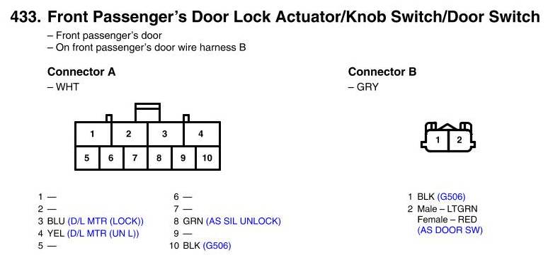 Front Passenger's Door Lock Actuator/Knob Switch/Door Switch Connector View