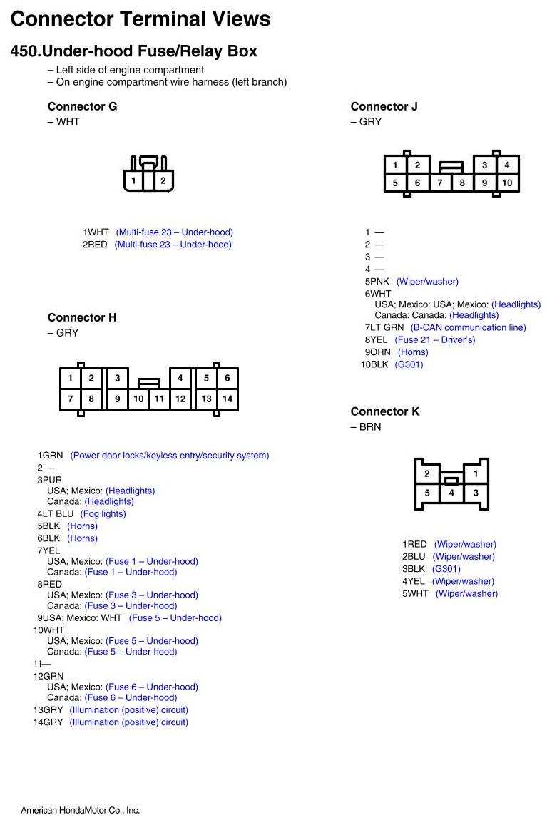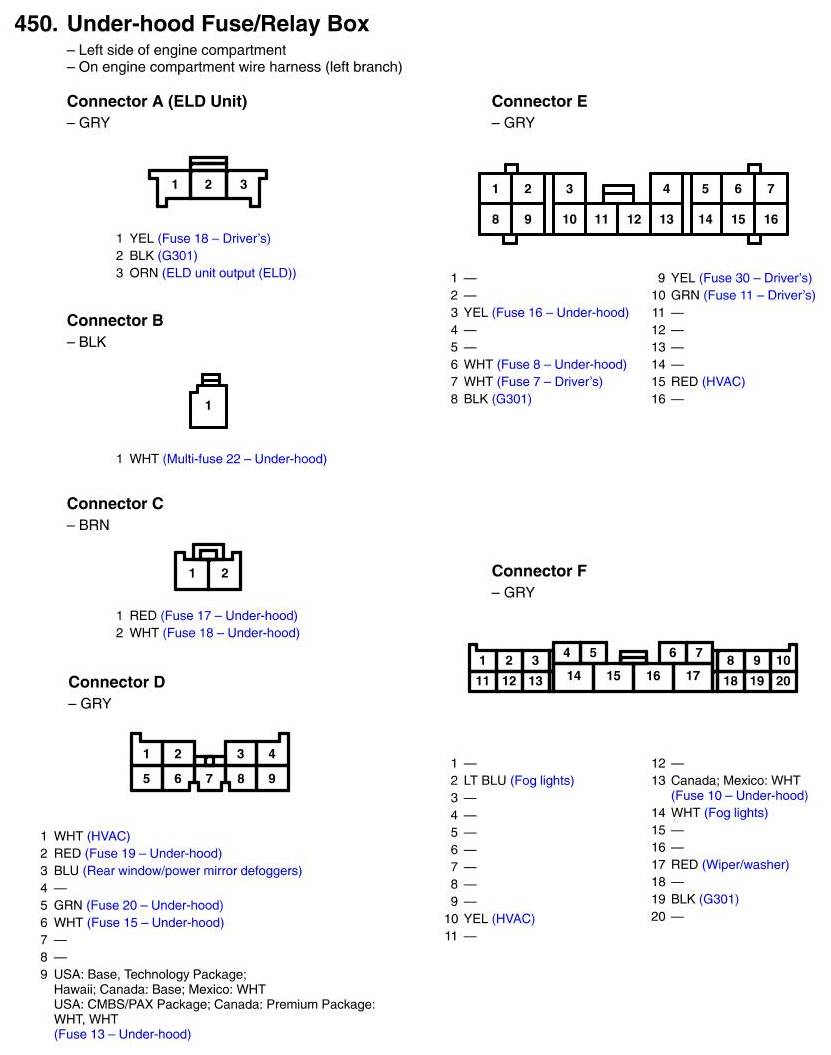 Under-hood Fuse/Relay Box Connector View