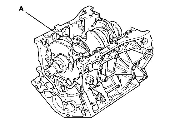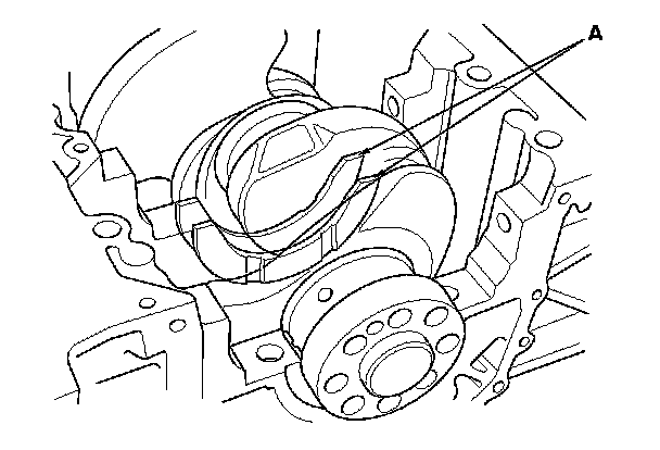 5. Lower the crankshaft (A) into the engine block.