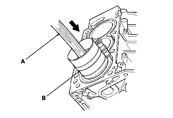 12. Position the piston/connecting rod assembly with the arrow (A) facing the timing belt side of the engine.