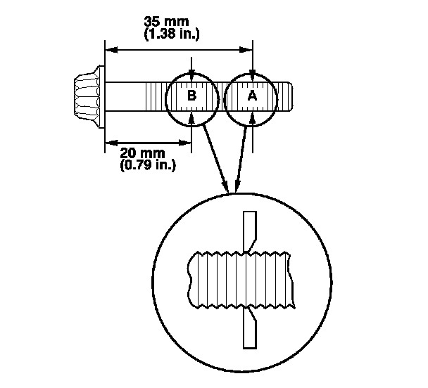15. Measure the diameter of each connecting rod bolt at point A and point B.