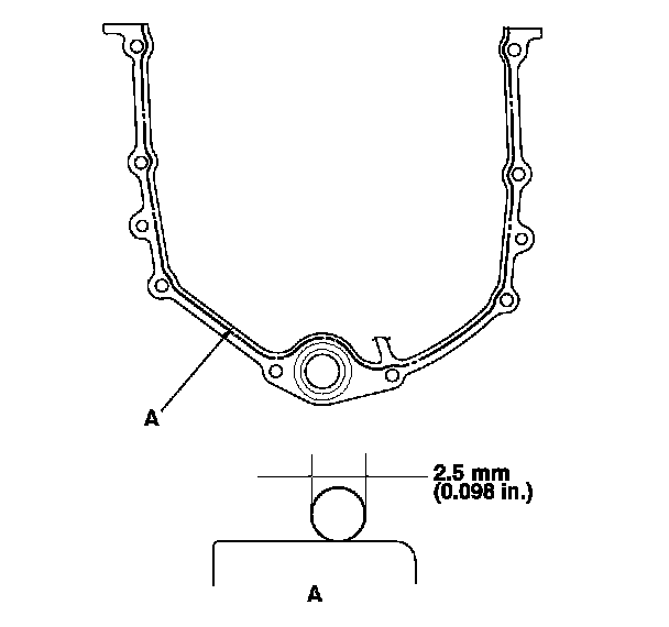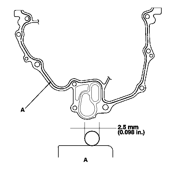 - Apply liquid gasket about 2.5 mm (0.098 in.) diameter bead along the broken line (A).