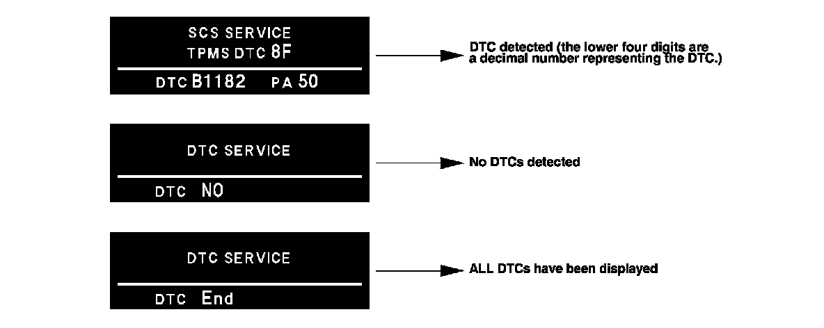 While in Test Mode 1, the DTCs that have been detected and stored individually by various B-CAN (body-controller area network) units, will be shown one by one on the multi-information display when the communication between the multiplex integrated control unit (MICU) and the gauge control module is normal. To scroll through the DTCs, press the select/reset button on the steering wheel.