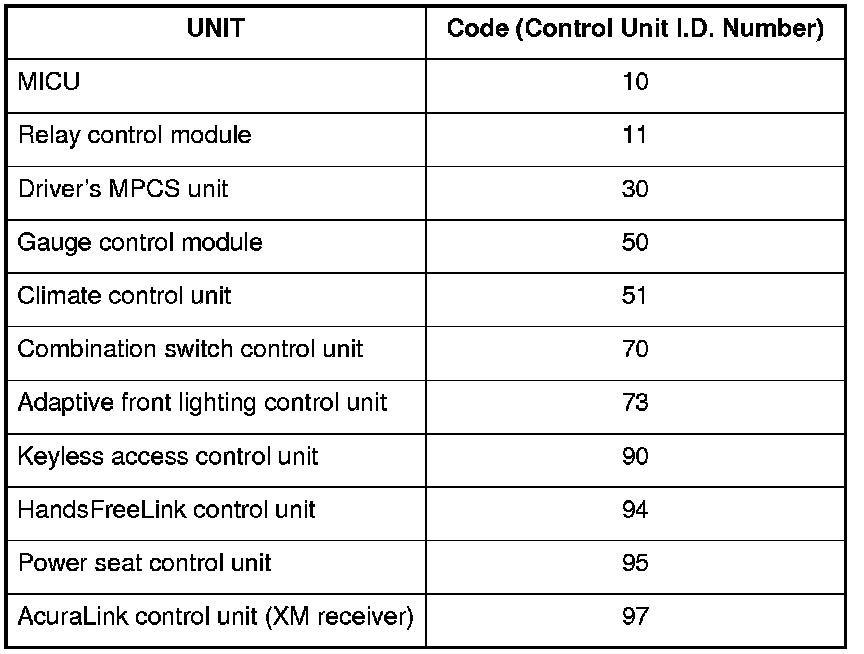 The unit that has stored the code can be identified by the number shown on the multi-information display (MID).