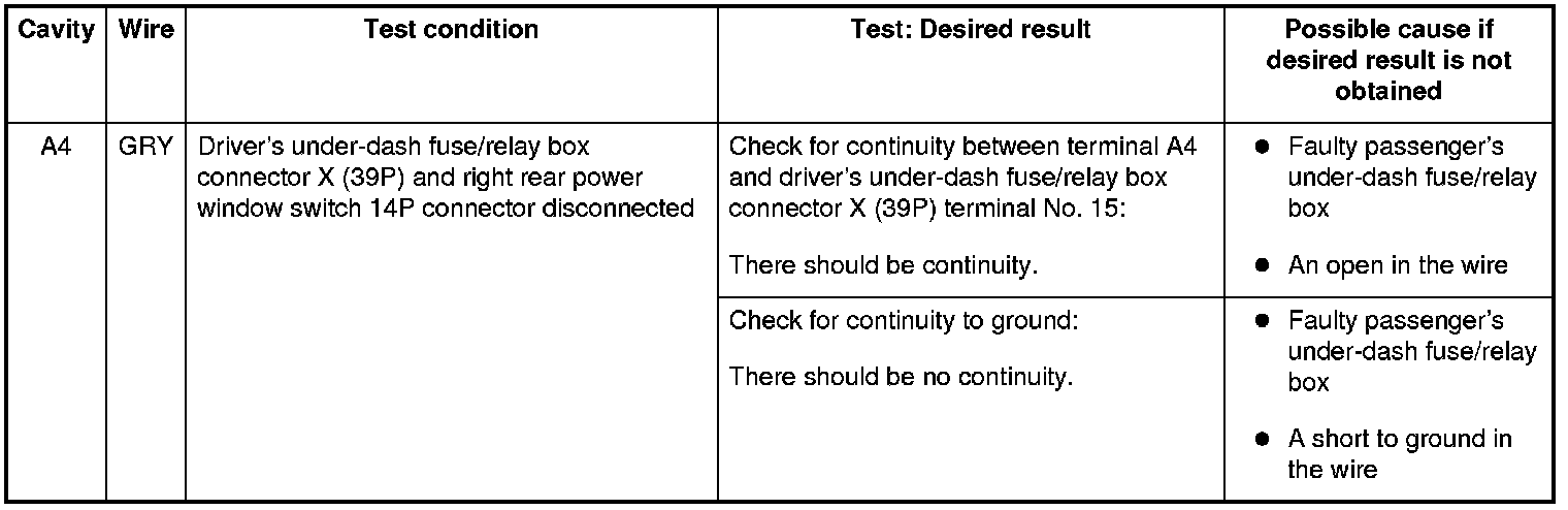 18. Reconnect the connector to the front passenger's MPCS unit, and do these input tests at the connector.