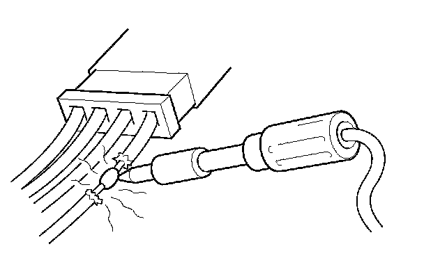 - When using electrical test equipment, insert the probe of the tester into the wire side of the connector. Do not insert the probe of the tester into the terminal side of the connector, and do not tamper with the connector.