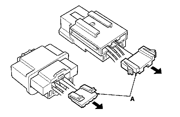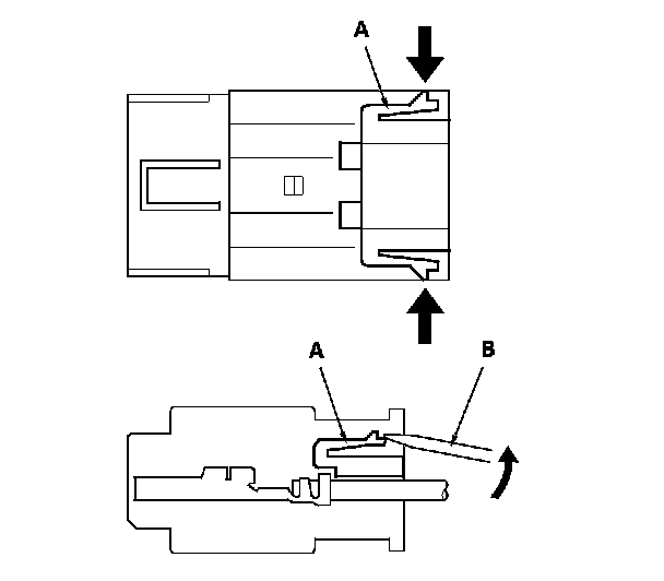 When checking voltage or resistance on this type of connector the first time, you must remove the retainer (A) to insert the tester probe from the wire side.
