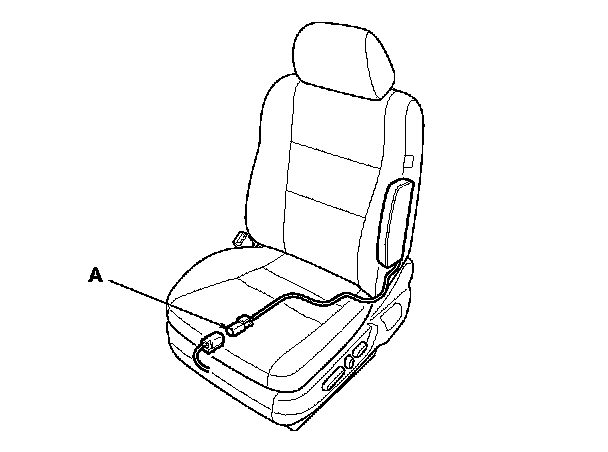 4. Disconnect driver's and front passenger's side airbag 2P connectors (A) from the left side wire harness or right side wire harness.