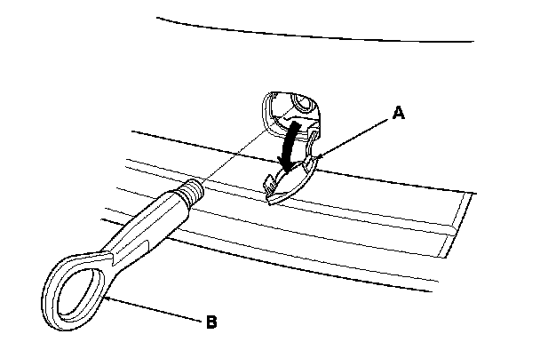 3. Screw in the towing hook (B), and tighten it securely by hand.