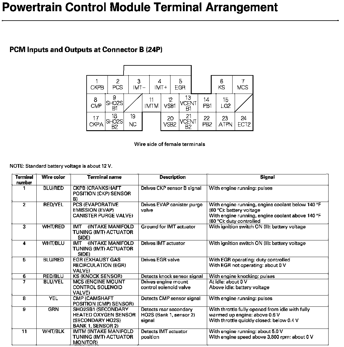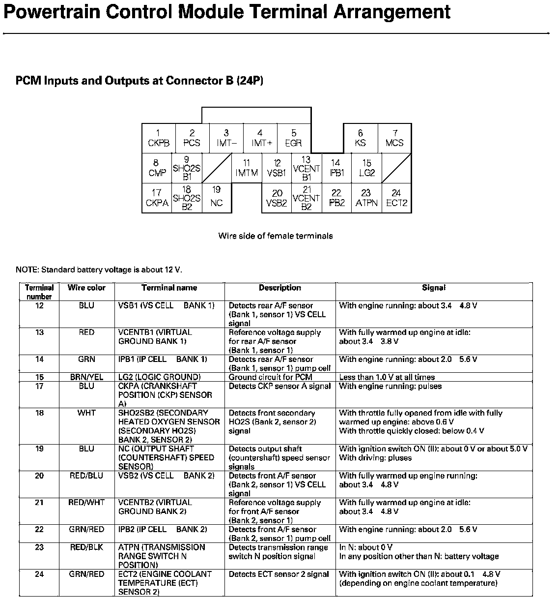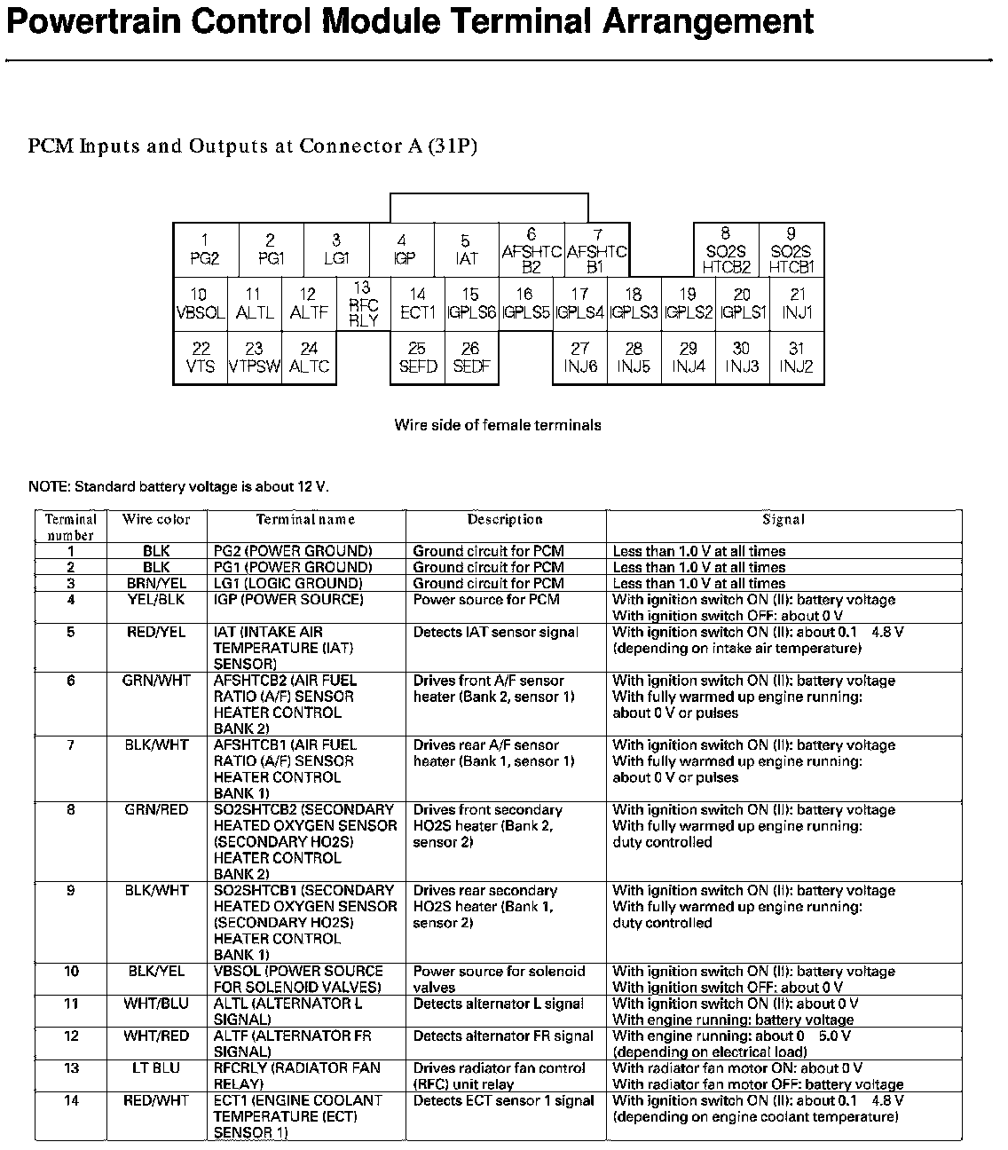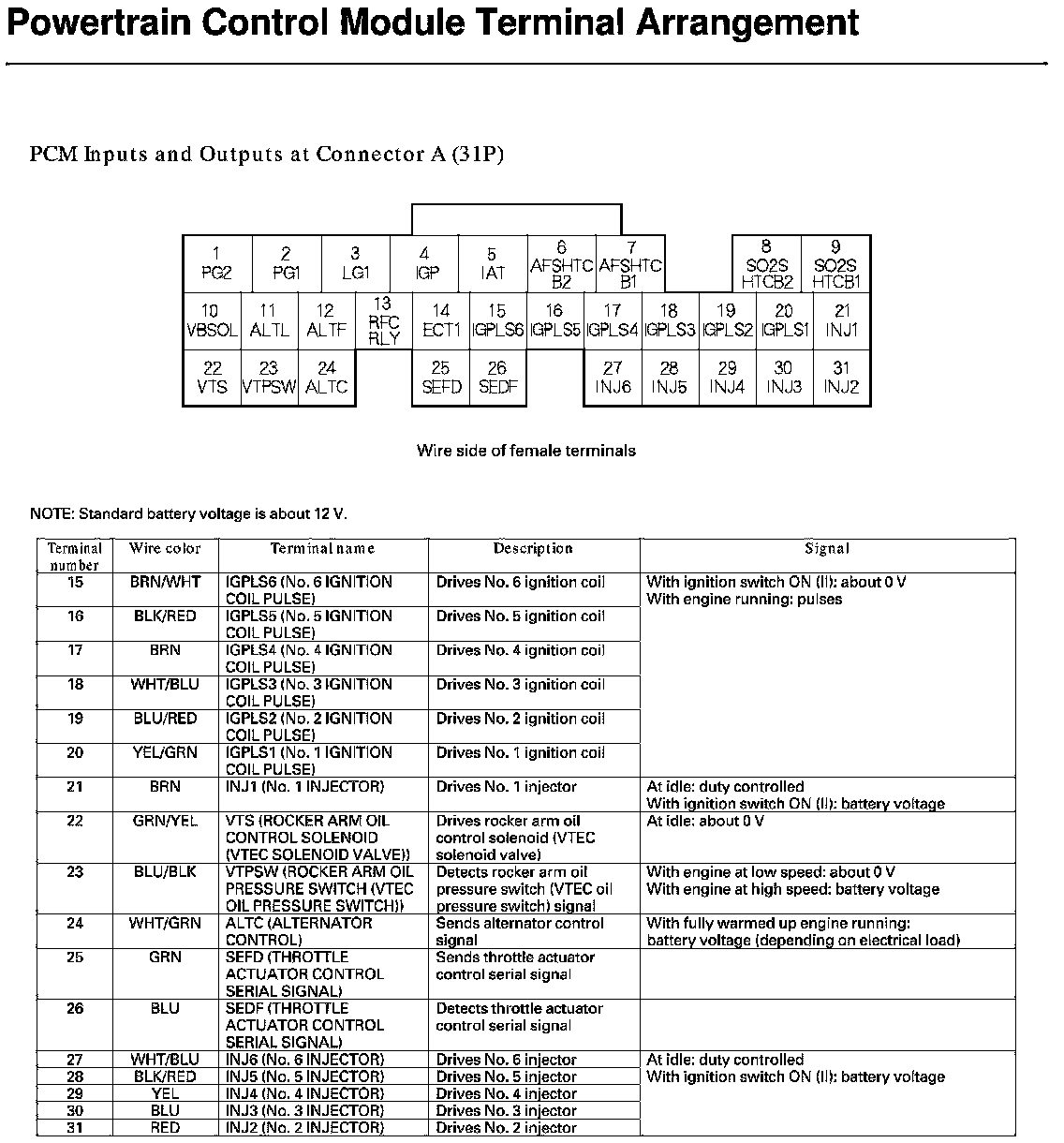 PCM Inputs and Outputs at Connector A