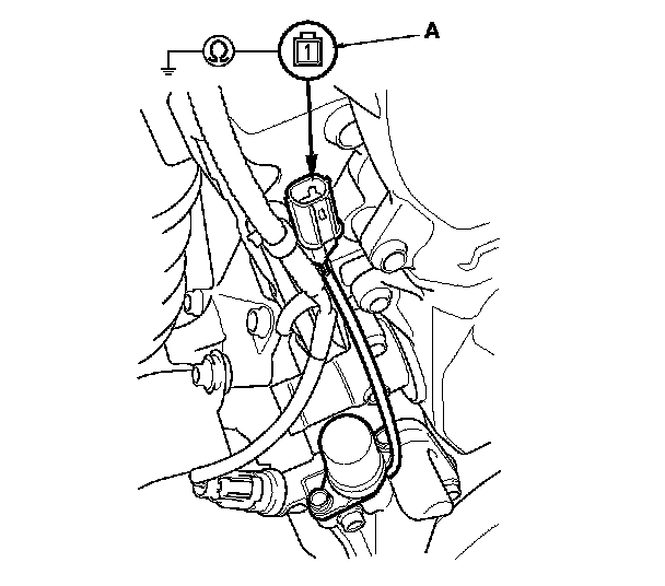 2. Measure the resistance between the rocker arm oil control solenoid 1P connector terminal (A) and body ground.