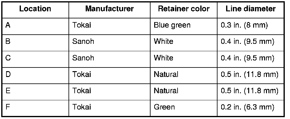 A disconnected quick-connect fitting can be reconnected, but the retainer on the mating line cannot be reused once it has been removed from the line. Replace the retainer when: