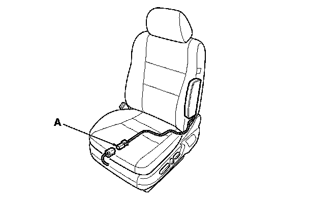 6. Disconnect the side airbag 2P connector (A) from the floor wire harness.