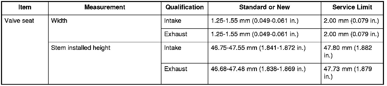 Valve Seat Specifications