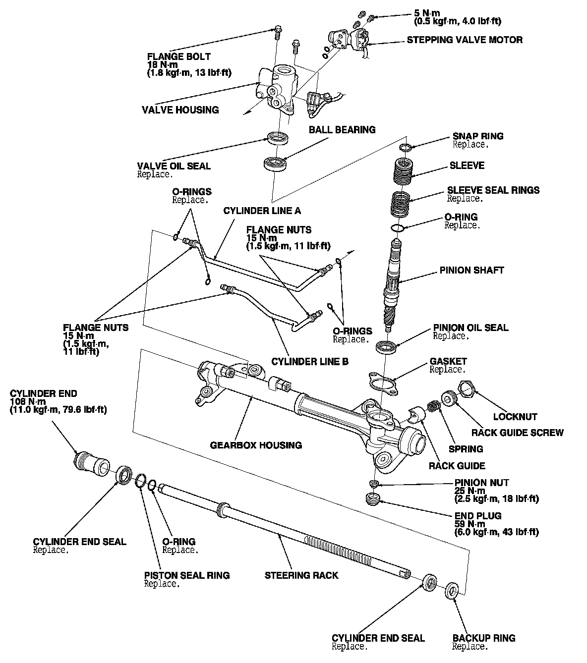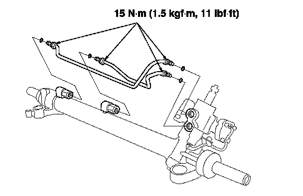 9. Drain the fluid from the cylinder fittings by slowly moving the steering rack back and forth.