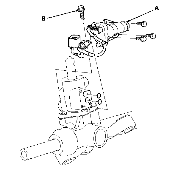 10. Remove the stepping valve motor (A), then remove the connector holder mounting bolt (B) on the valve housing.