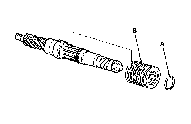 26. Remove the snap ring (A) and the sleeve (B) from the pinion shaft.