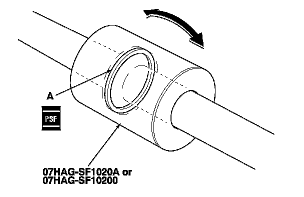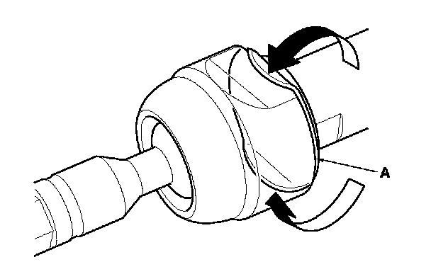 58. Coat the inside surface of the cylinder end seal slider and steering rack with power steering fluid, then install the cylinder end seal (A) onto the steering rack with its grooved side toward the cylinder.