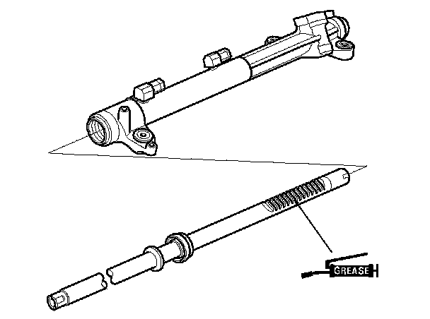 53. Apply multipurpose grease to the steering rack teeth, then insert the steering rack into the gearbox housing. Be careful not to damage the inner surface of the cylinder wall with the rack edges.