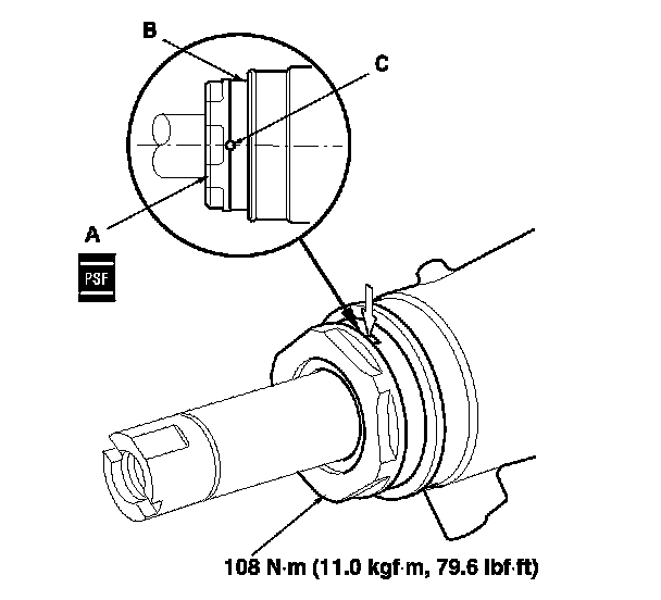 65. Install the new self-locking nut (A) onto the pinion shaft end, and tighten to the specified torque.