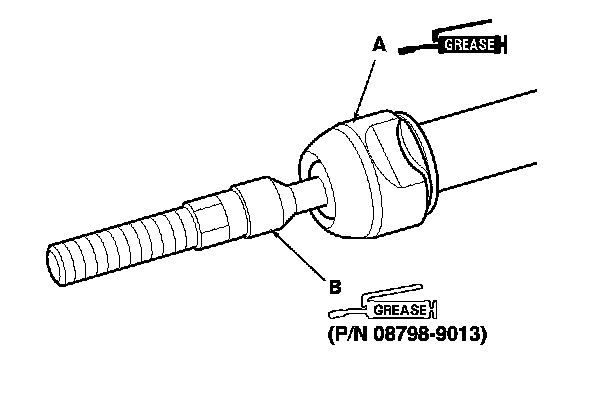 79. Apply a light coat of silicone grease to the boot grooves (B) on the rack ends.