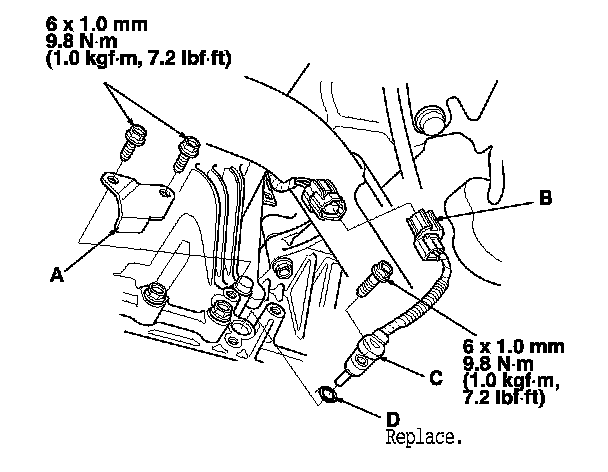 4. Install the differential fluid temperature sensor with a new O-ring (D) in the reverse order of removal.