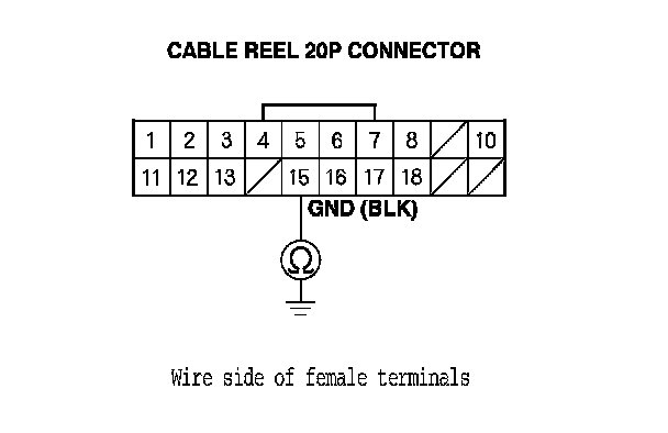 4. Check for continuity cable reel 20P connector terminal No. 15 and body ground.