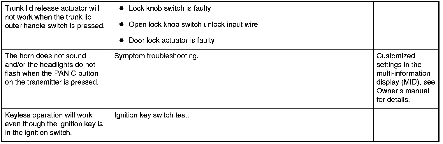 Keyless/Power Door Locks/Security System Symptom Troubleshooting