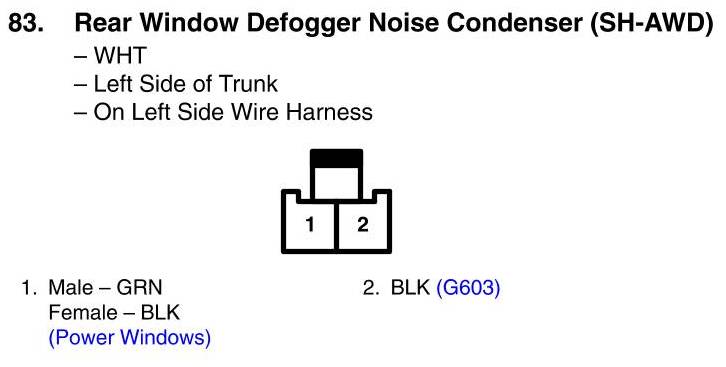 View 83 - Rear Window Defogger Noise Condenser Connector View (SH-AWD)