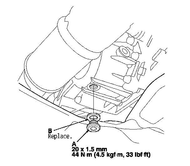 3. Remove the drain plug (A), and drain the transfer fluid (hypoid gear oil).