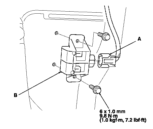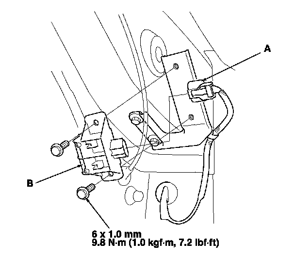 6. Remove the initiator (B) from the inner side of the wheelwell.