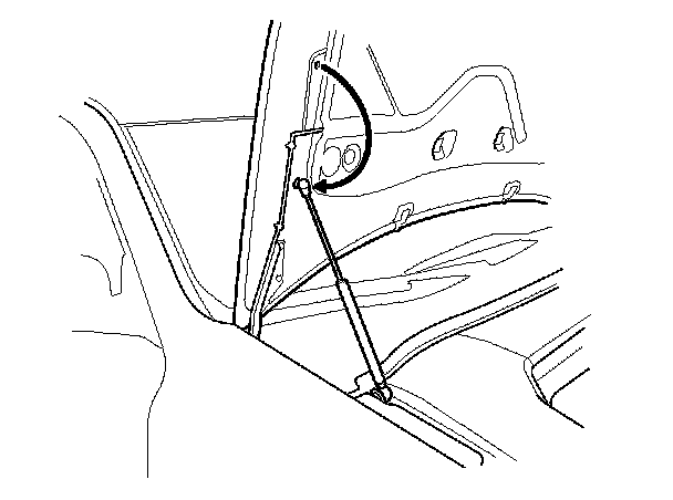 NOTE: Do not attempt to close the hood with the support strut in the vertical position, as it will damage the support strut and hood.