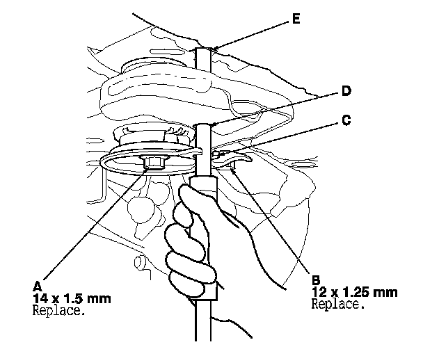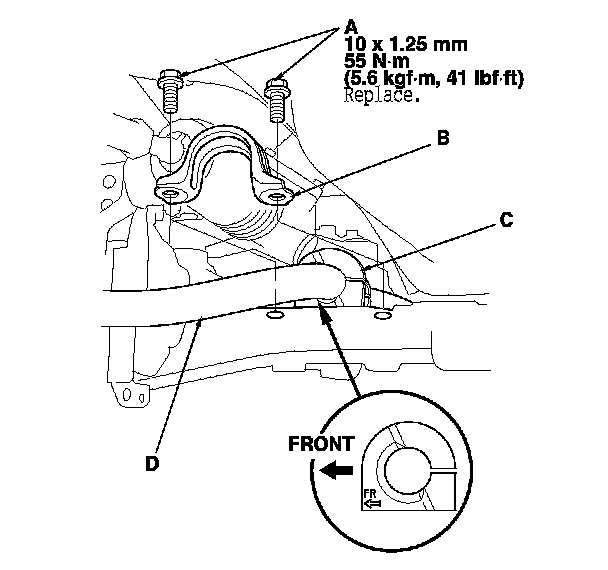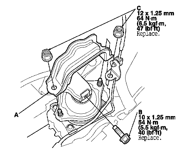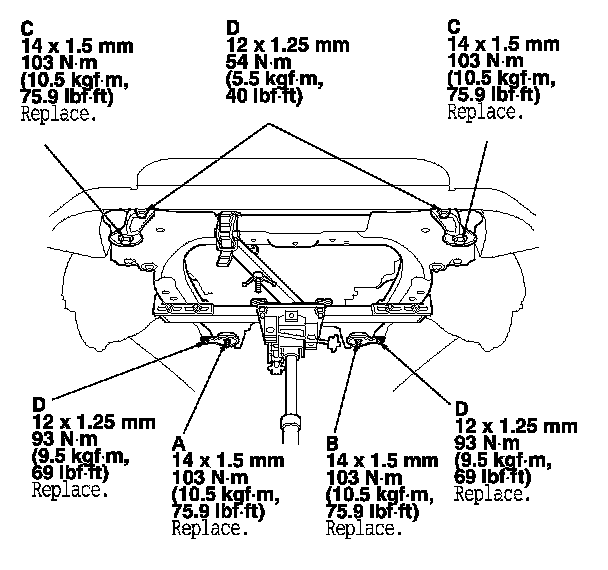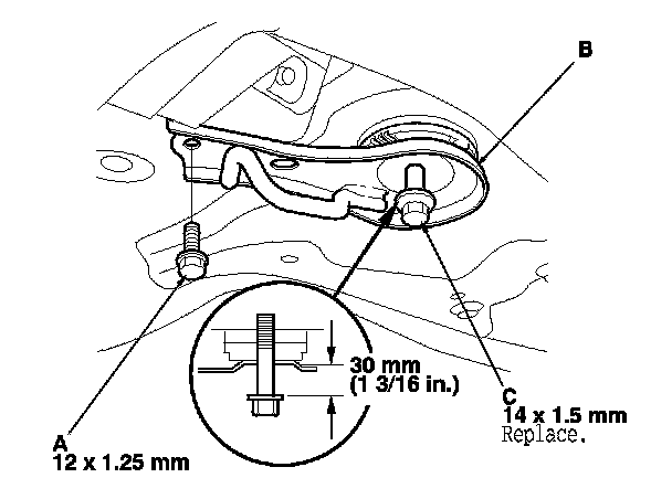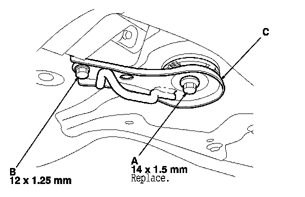 NOTE: Use new nuts (C) and a front engine mount bolt during reassembly.