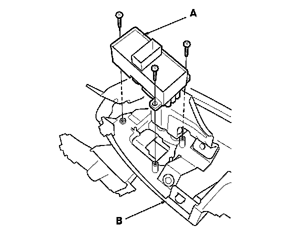 2. Remove the three screws and rear power window switch (A) from the armrest assembly (B).