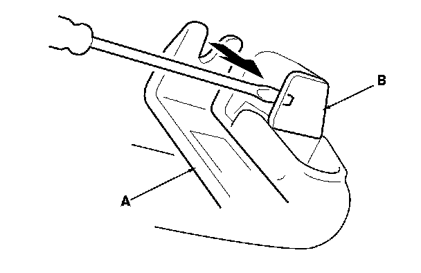 1. Lower the grab handle (A), then insert a small flat-tip screwdriver wrapped in protective tape into the notch.