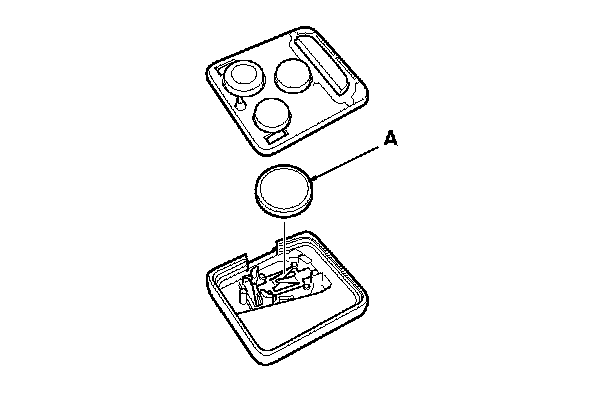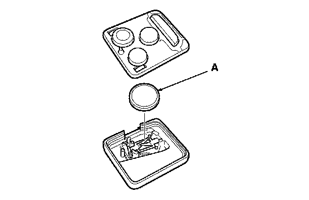 4. Replace the transmitter battery (A) with a new one (CR1616), and try to lock and unlock the doors with the transmitter by pressing the lock or unlock button five or six times.