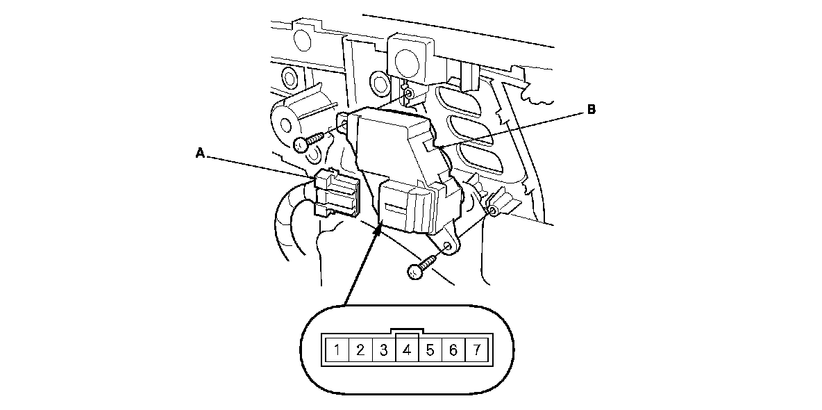 2. Disconnect the 7P connector (A) from the driver's position memory switch (B).