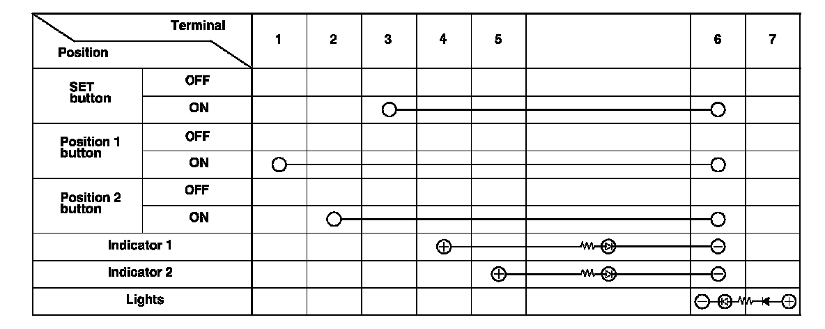 4. Check for continuity between the terminals in each switch position according to the table.