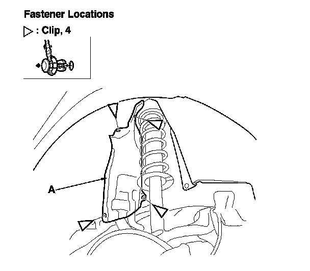2. Remove the clips, then remove the fuel pipe protector (A).