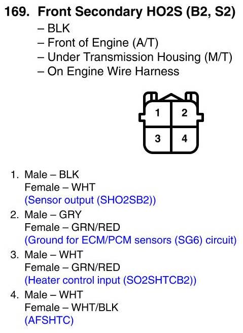 Front Secondary HO2S (B2, S2) Connector View