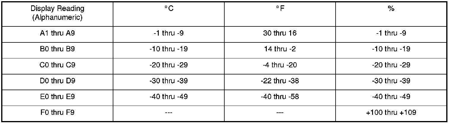 - The sensor values are displayed in degrees Celsius (°C) or an alphanumeric code. Use the charts to convert degrees Fahrenheit (°F), or convert the alphanumeric code to a numerical value.