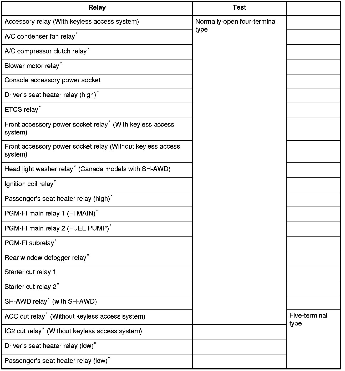 Use this chart to identify the type of relay, then do the test listed for it.