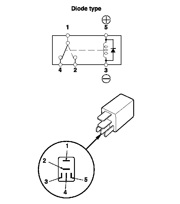 - There should be continuity between terminals No. 1 and No. 2 when battery power is connected to terminal No. 5, and body ground is connected to terminal No. 3.