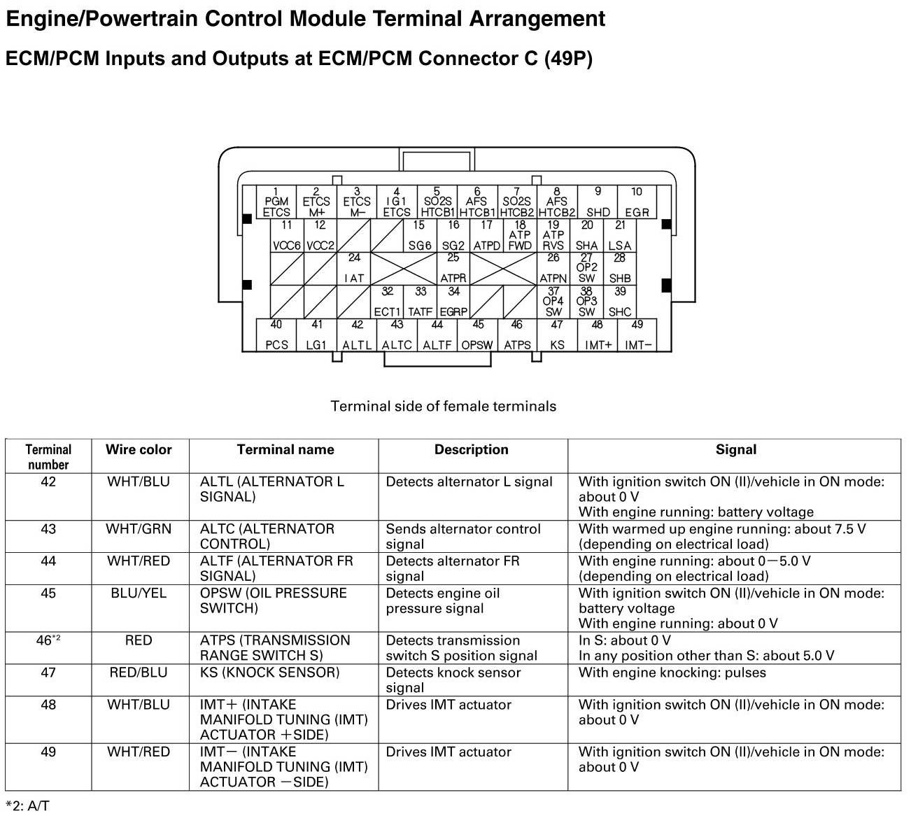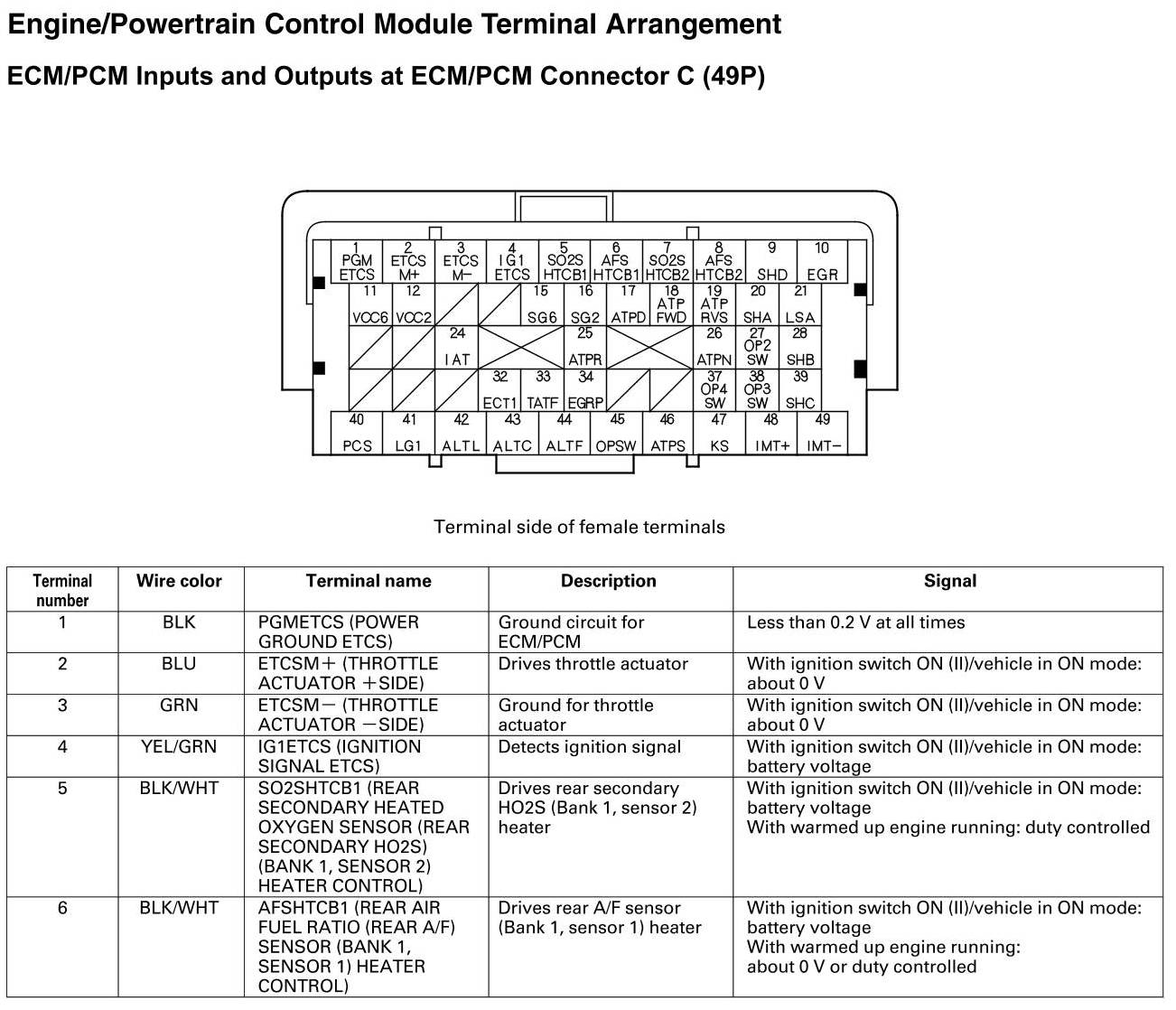 ECM/PCM Inputs and Outputs at Connector C