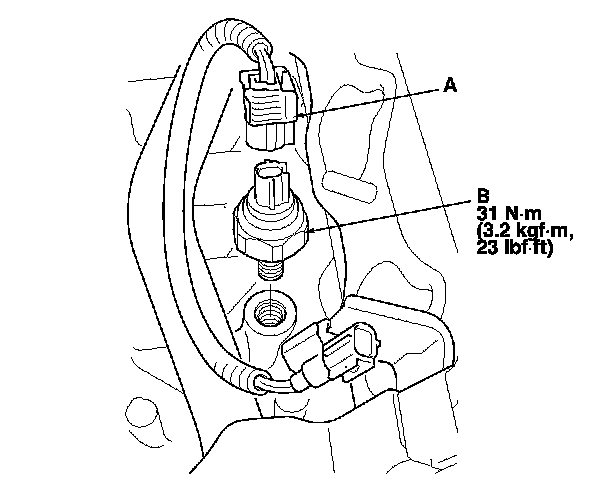4. Remove the knock sensor (B).