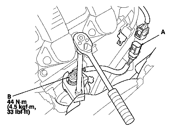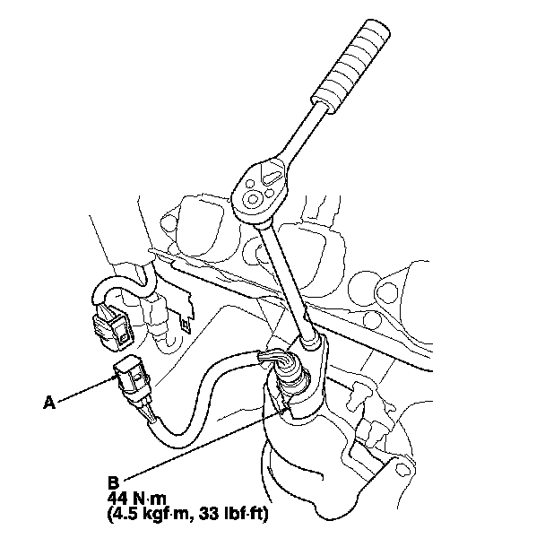 1. Disconnect the rear A/F sensor 6P connector (A), then remove the A/F sensor (B).